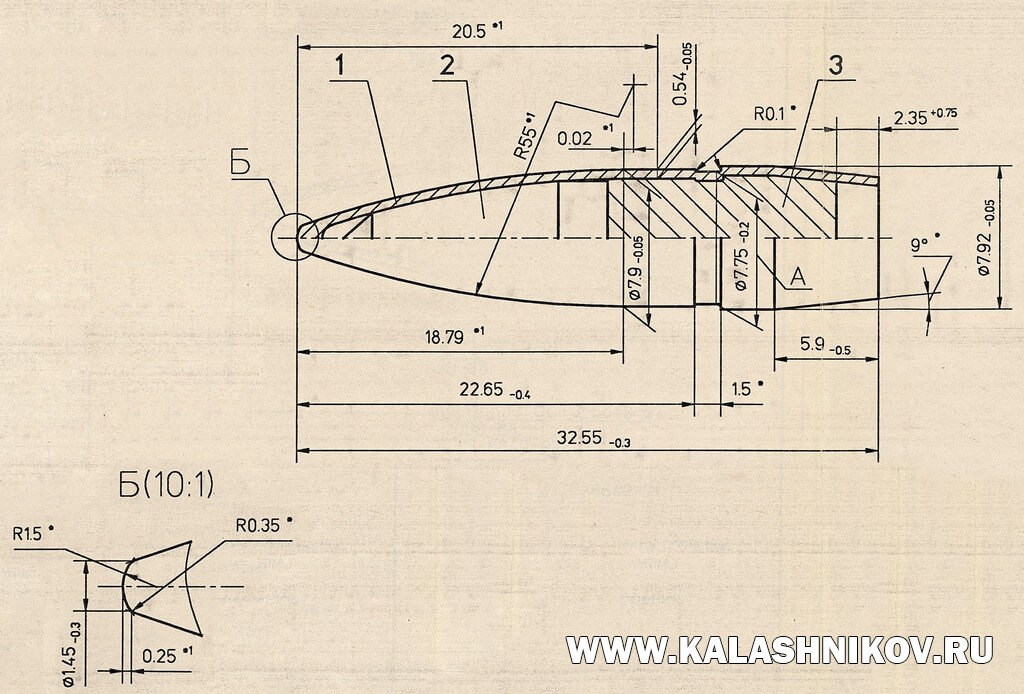 Чертёж пули 7Н14