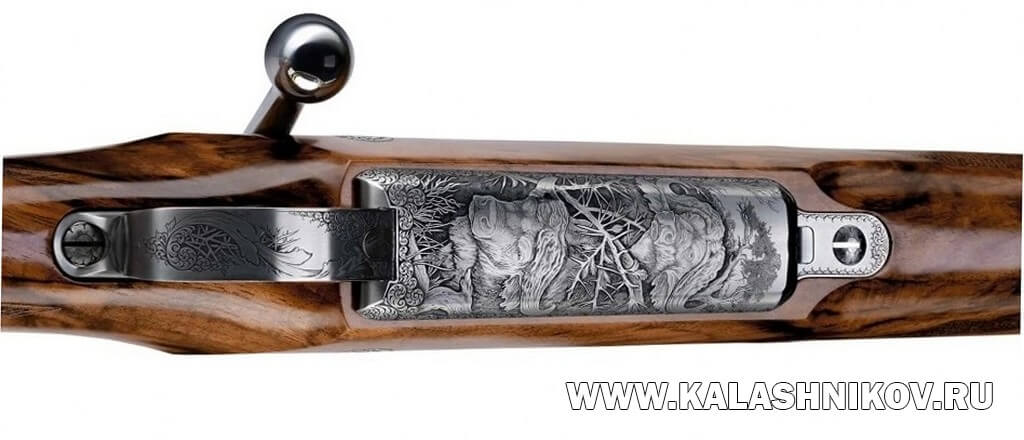 Ствол длиной 620 мм, мушка и основание целика воронёные и отполированы вручную. Изящные золотые вставки и английские орнаменты на основании ствола и предохранителе создают элегантные акценты.